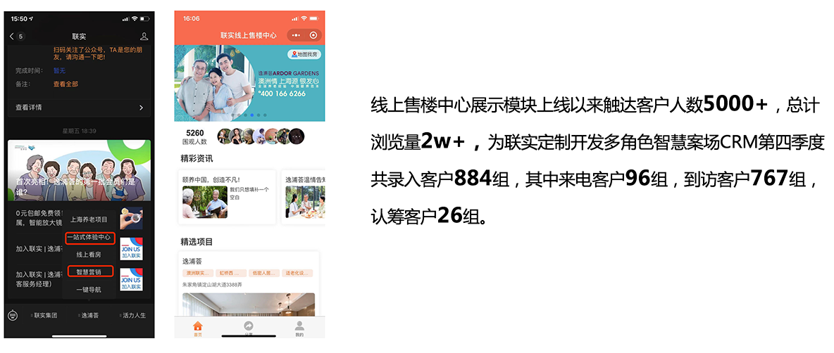 逸浦荟是澳大利亚上市集团在华的首个养老项目,客户基础较弱,宣传推广也较依赖品牌,如何从初次的信息触达客户以及客户寻找对应产品的接触点开始,建立智能化的服务对接关系和连接纽带,从而更精准的进行客户信息推送及售前售中的服务通知,并在到访客户完成购买决策的过程中进行友好有效的服务,提升转化率和客户满意度,是联实该阶段关心和考虑的重点。
